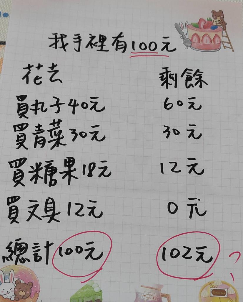 剩餘的錢根本就不應該這樣加總起來
