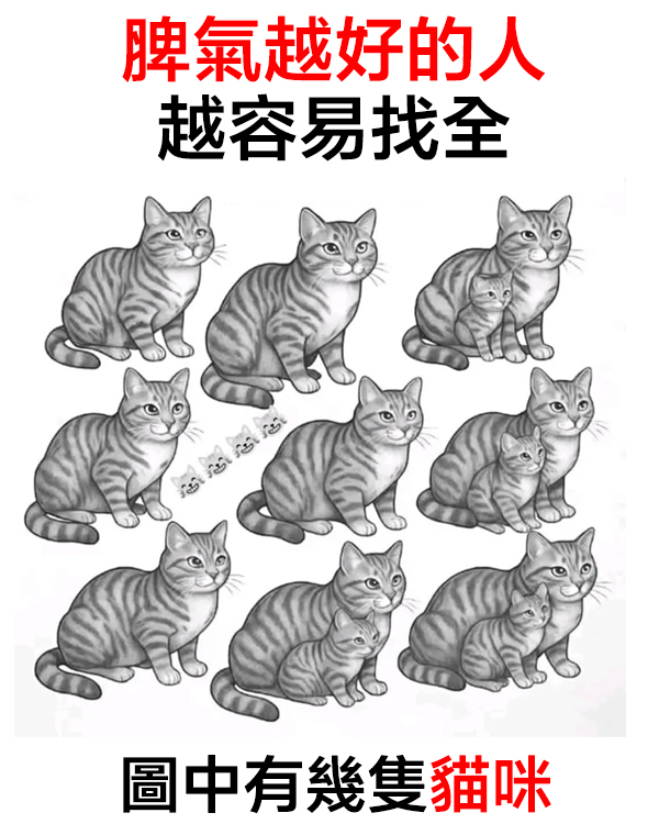 這張圖看起來像是在考你「數有幾隻貓」,但其實真正難的地方不在大隻貓,而是在那些被藏起來的小貓。
