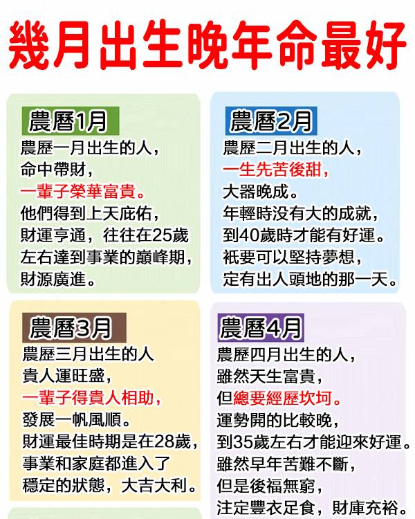 晚年運特別強的月份 👉 10月、5月、7月