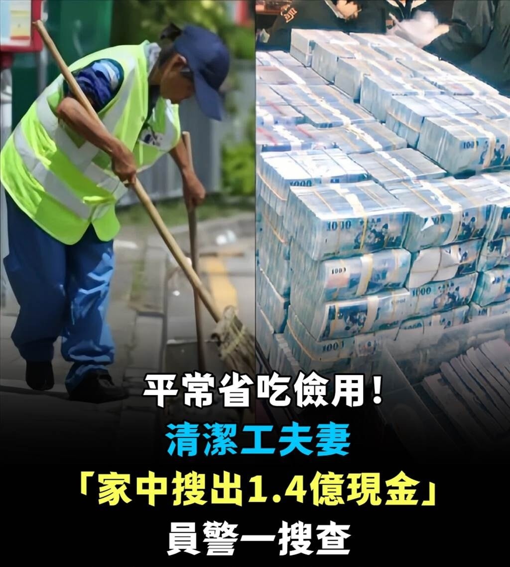 一對年約60多歲的清潔工夫妻,平日樸素節儉,穿著簡單、生活低調,鄰居都以為他們家境清寒。沒想到,最近警方接獲線報前往他們住處搜查時,竟在屋內牆壁夾層、床底及儲藏櫃裡,發現堆滿整整一屋現金——金額高達1.4億元!消息一出,整個社區都震驚到說不出話。