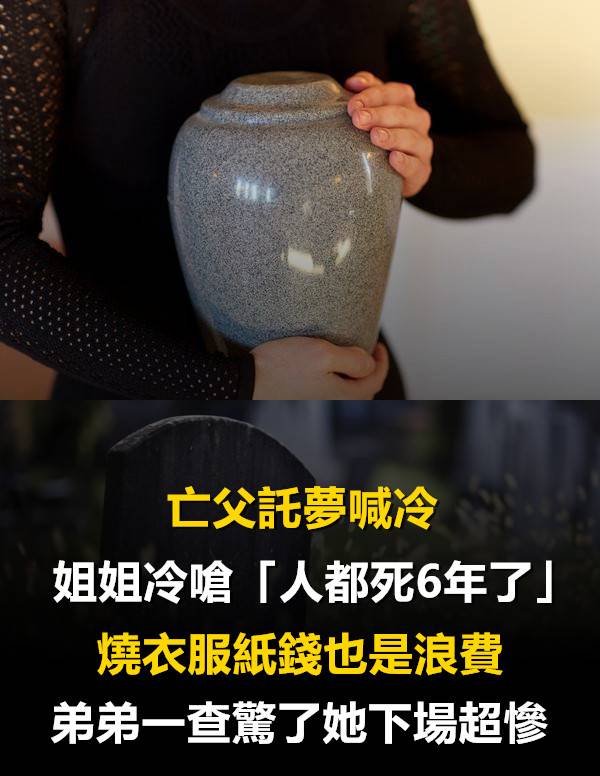 不少人認為,夢到過世的人,是在傳達一些訊息,或是帶有警示意味,近日一位網友就透露,朋友連續半個月夢到過世的爸爸,每次都裸著上身喊冷、沒地方住,告知姐姐後,姐姐卻冷回:「燒衣服跟紙錢也是浪費!」沒想到結局卻慘了…