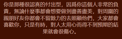 優點: 懂得傾聽內心的聲音,注重身心健康。